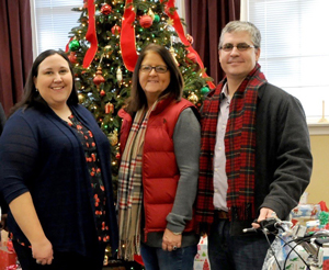Reinhardt staff member Janna Moore is pictured with Dottie Townsend and Jon Costales of R.M. Moore Elementary School as they collected the gifts collected at the University for R.M. Moore students and their families.