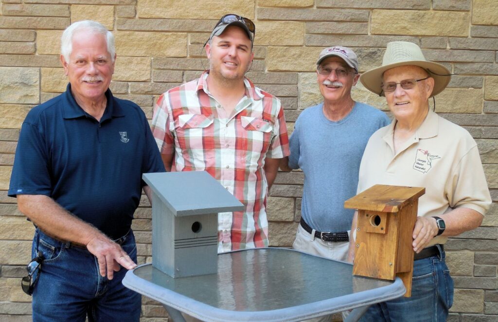 During the dark days of COVID isolation last year, two Master Gardeners, Ron Fister and Russell Brannon built bluebird houses in their home workshops. As a result of their work, eight bluebird houses were placed on the Reinhardt campus this spring. The placement was a cooperative effort involving many of the Reinhardt University community including Dr. Zach Felix, Dr. Austin Flint, Mr. Jeff Dale and Mr. Joe Skibo. It also involved Josh Fuder, UGA Agricultural and Natural Resources Extension Agent for Cherokee County, and Mike Lloyd, another Master Gardener, acting as a liaison between everyone involved in the project.