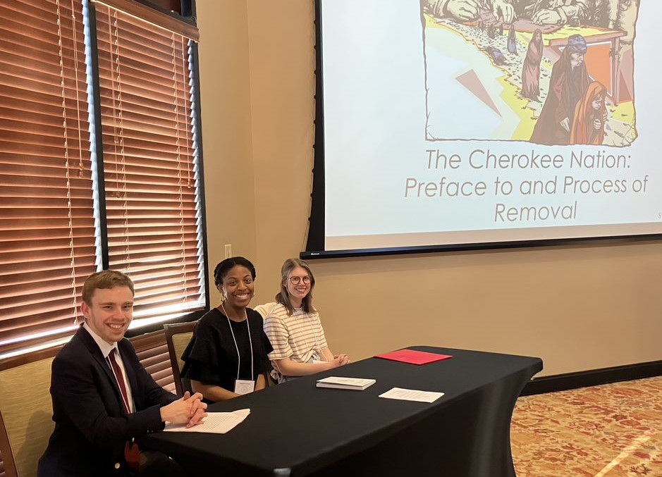 The Cherokee Voice Project is funded by the National Endowment of Humanities (NEH), and was created by Jeff Bishop, the Director of the Funk Heritage Center and Professor of Public History at Reinhardt. A grant allowed Jones and Bishop to hire three interns to help with this extensive process. RU Seniors Christopher Walker, Kamille McKinney and Sydney Murray, along with Jones, shared their research at the conference.