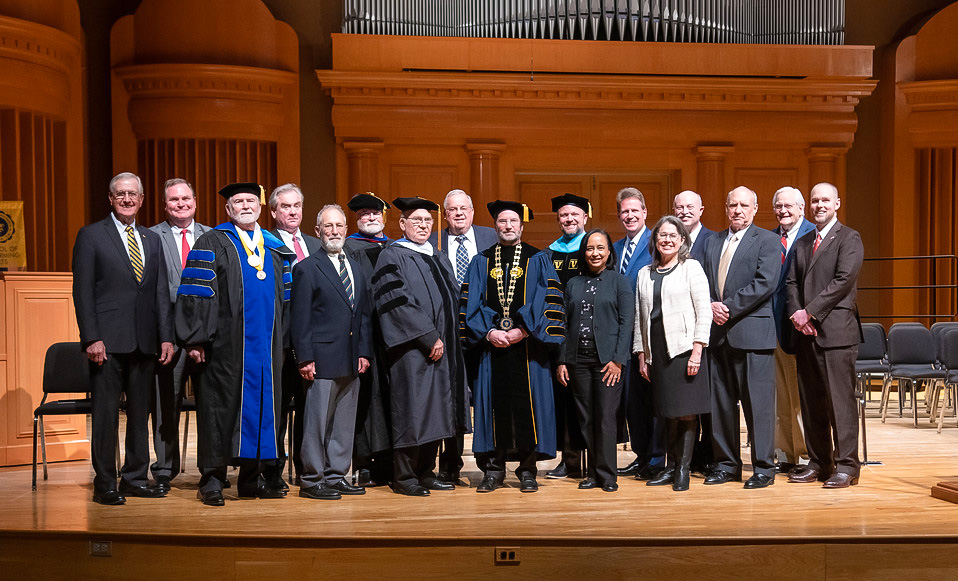 Late Friday afternoon, the Falany Performing Arts Center was abuzz with the inauguration ceremony. Members of the Board of Trustees spoke along with representatives from the community, faculty, staff, alumni, students, a past colleague, and Roberts’s family. All were encouraging and enthusiastic about Reinhardt’s future with Roberts as the lead.