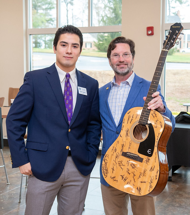 At the brunch, Roberts was presented with several gifts. Tyler Ingram ’23, president of the Student Government, gave Roberts a model tractor and a guitar signed by the student leaders, on behalf of the student body.