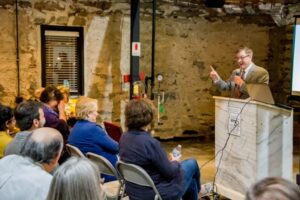 Dr. Ken Wheeler presented his sabbatical research to a standing-room-only crowd at the Cherokee County Historical Society Feb. 20. Photo by Jeff Reed