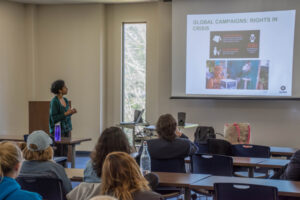 Addressing Reinhardt University students, faculty and staff in the Hill Freeman Library Community Room, Jayasinghe presented “An Introduction to the Good Work of Oxfam America,” explaining how international organizations actively support those in need and how to get involved.