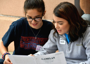 Reinhardt student Rachel Hutto helps Sequoyah High School student Sophia Muscato during the Choral Festival last week. Photo by Jordan Beach