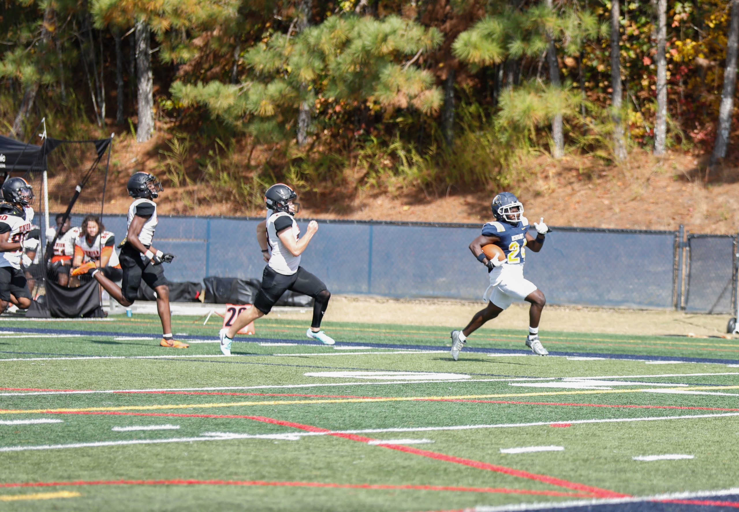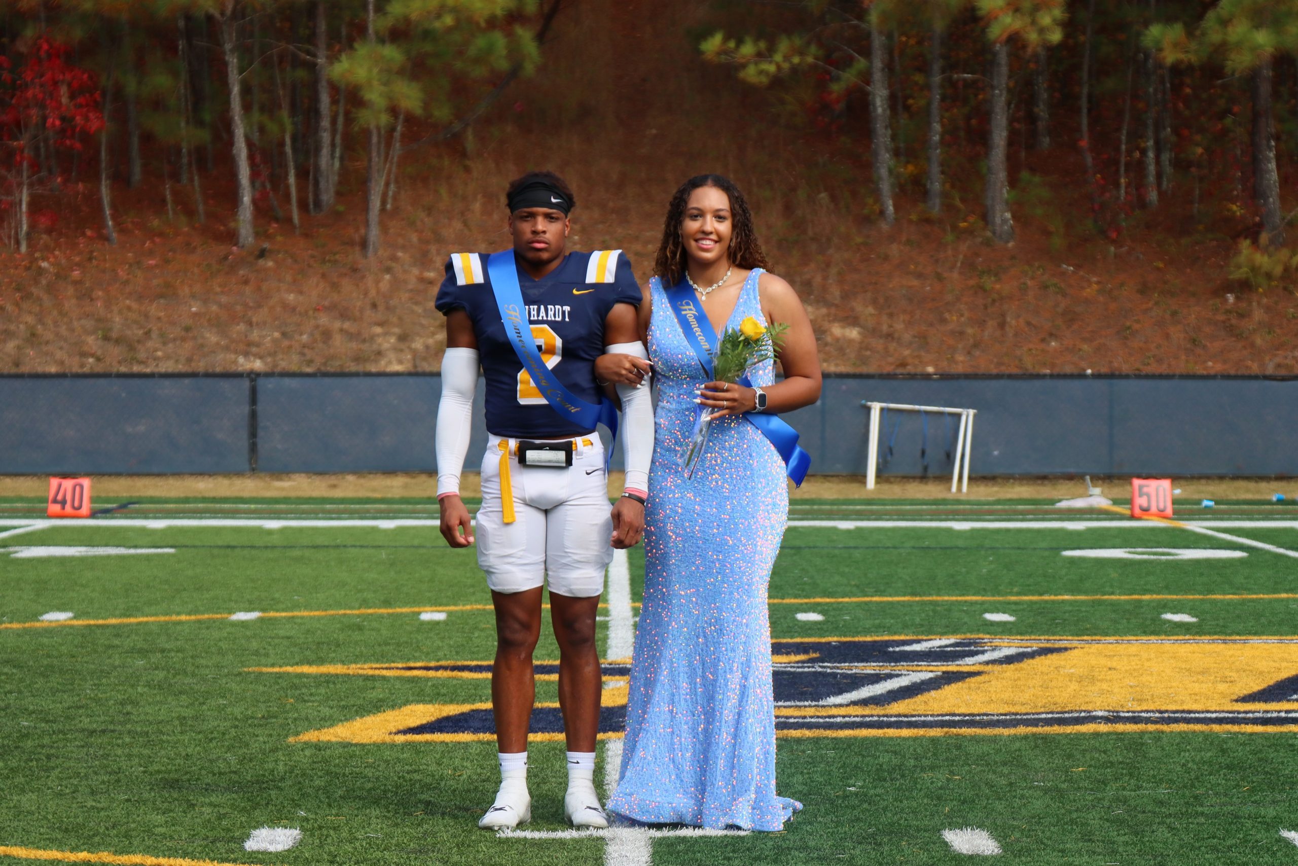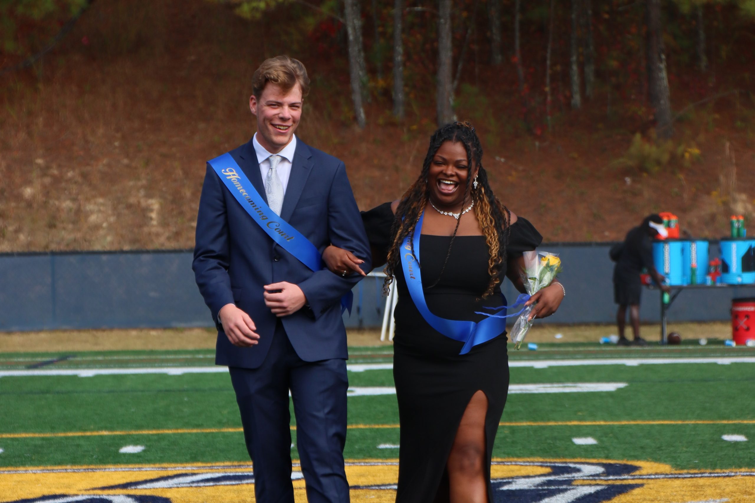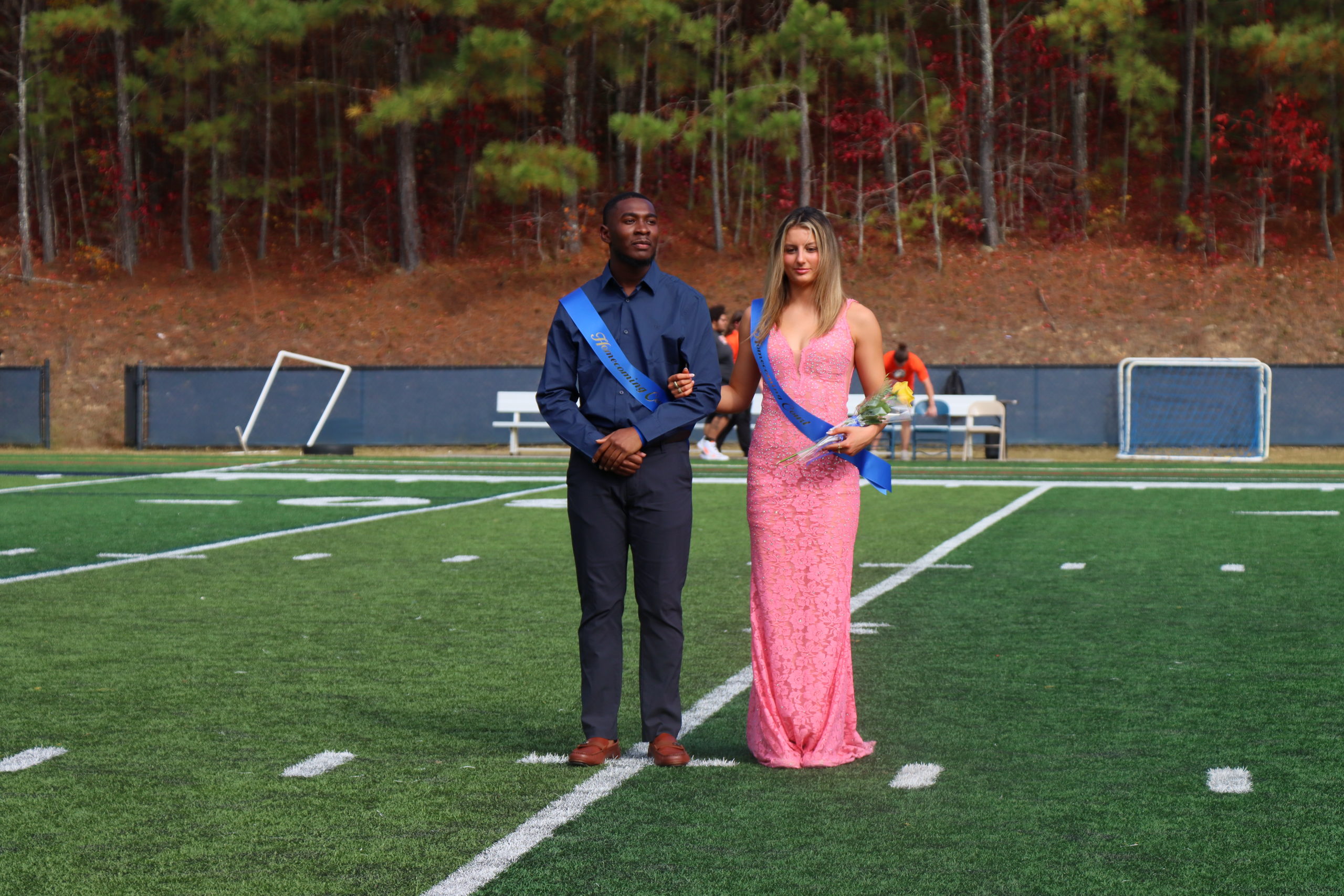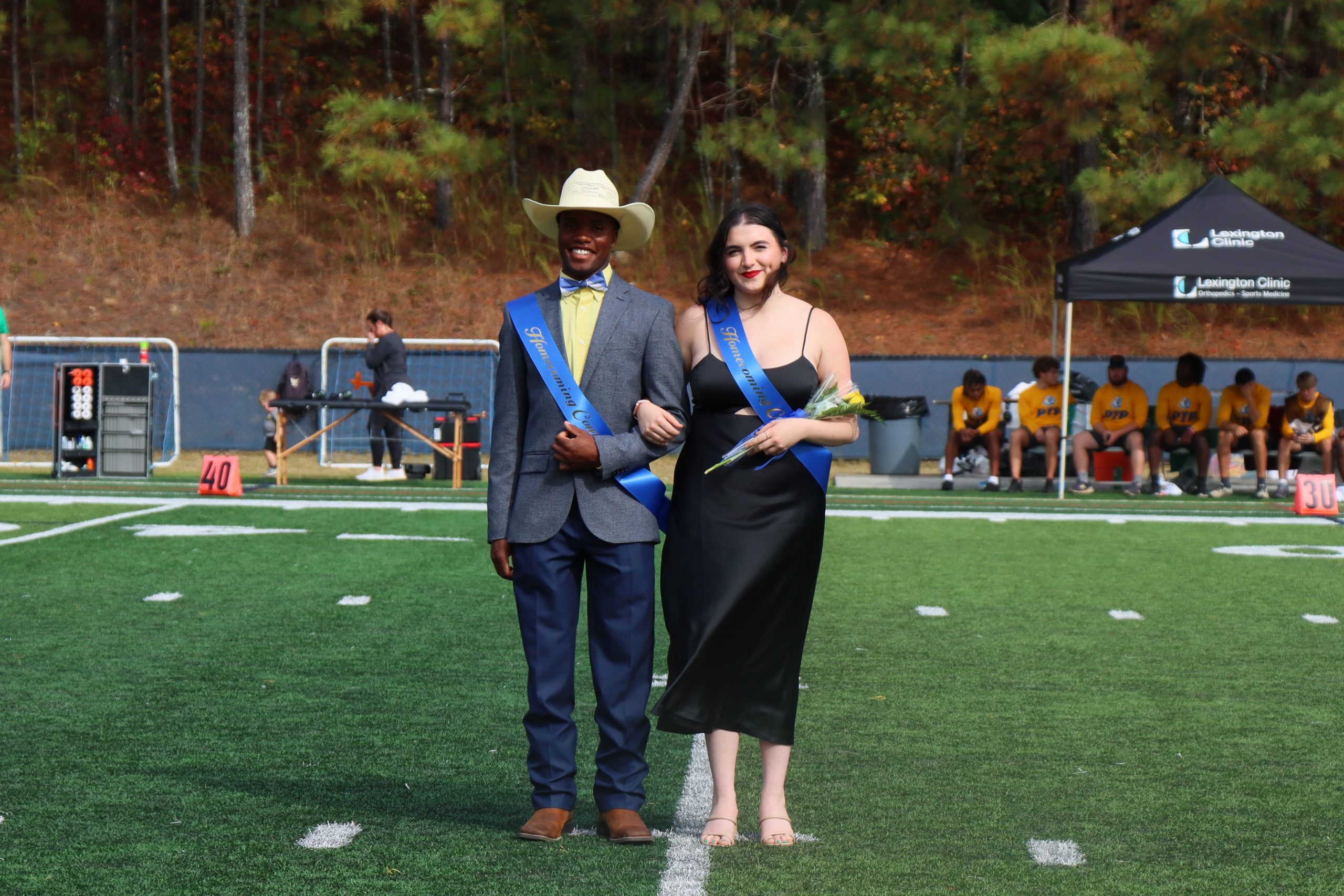 At half-time, the 2023 Homecoming Court took the field. Jacob Profit and Hannuh Southern were voted King and Queen. The Royal Court was comprised of seniors Liam Wright, Esteban Sued, Josephine Gangi, Jared Keith Brooks, Torrie Smith, and Isabella Scarcella. Juniors Markell Sutton and Kiara Simpson, sophomores Jeremiah Rowe and Brianna Simpson, and freshmen Desi Daniels Jr. and Bethanee Wiggins represented their classes on the court.
