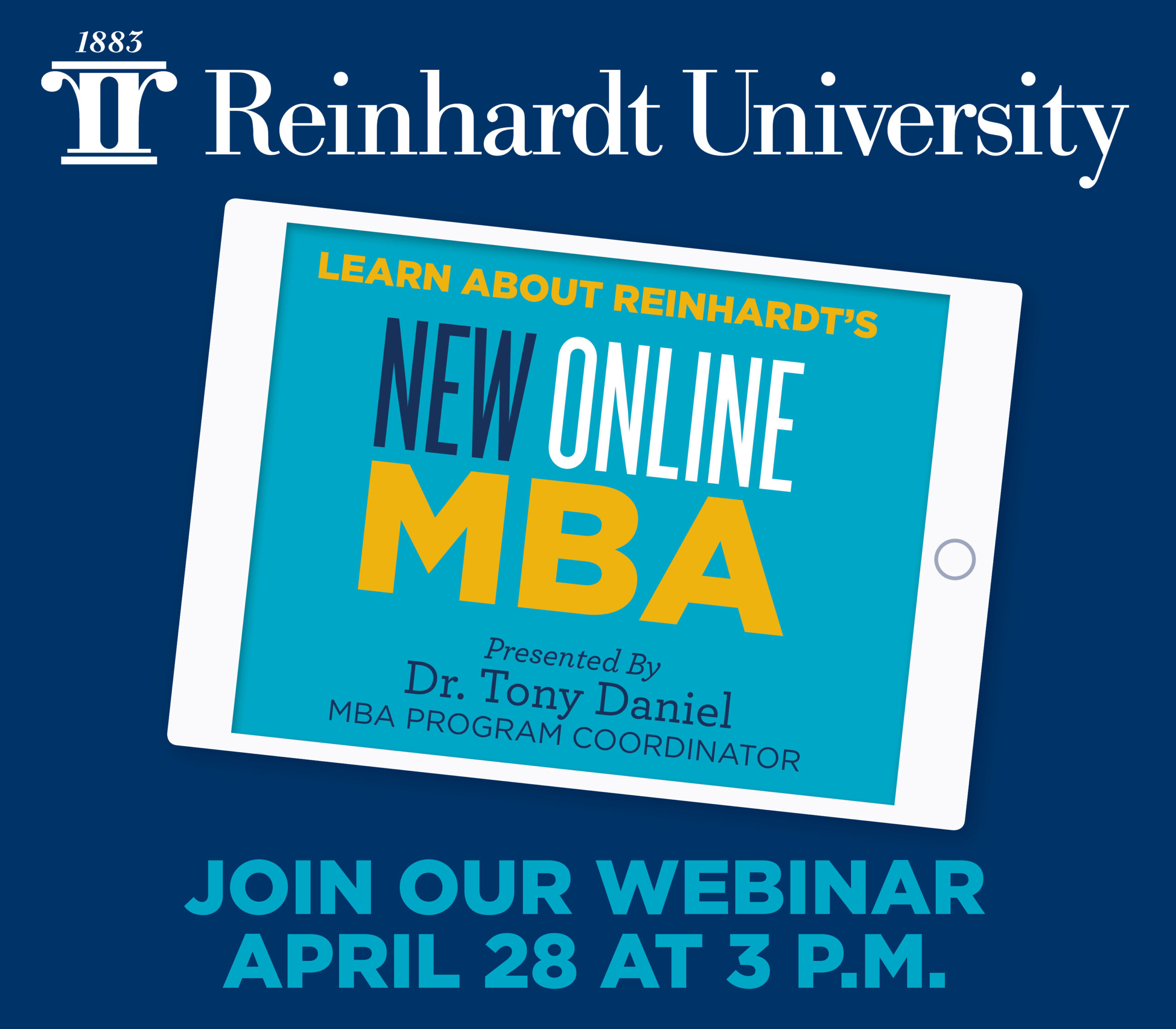 Reinhardt will offer an in-depth discussion with Master of Business Administration (MBA) Program Coordinator Dr. Tony Daniel on April 28 at 3 p.m. Register on our website to participate.