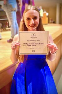 A vocal performance major’s enjoyment for learning led to qualifying to compete nationally. Gilliane Conklin (RU – 2024) traveled to Alabama earlier this month where her voice soared at the Southeast regional level of NATS (National Association of Teachers of Singing). Chosen as a finalist, she will participate in the national rounds via video submission, with the goal of being chosen for the live national semifinal in Knoxville this summer.
