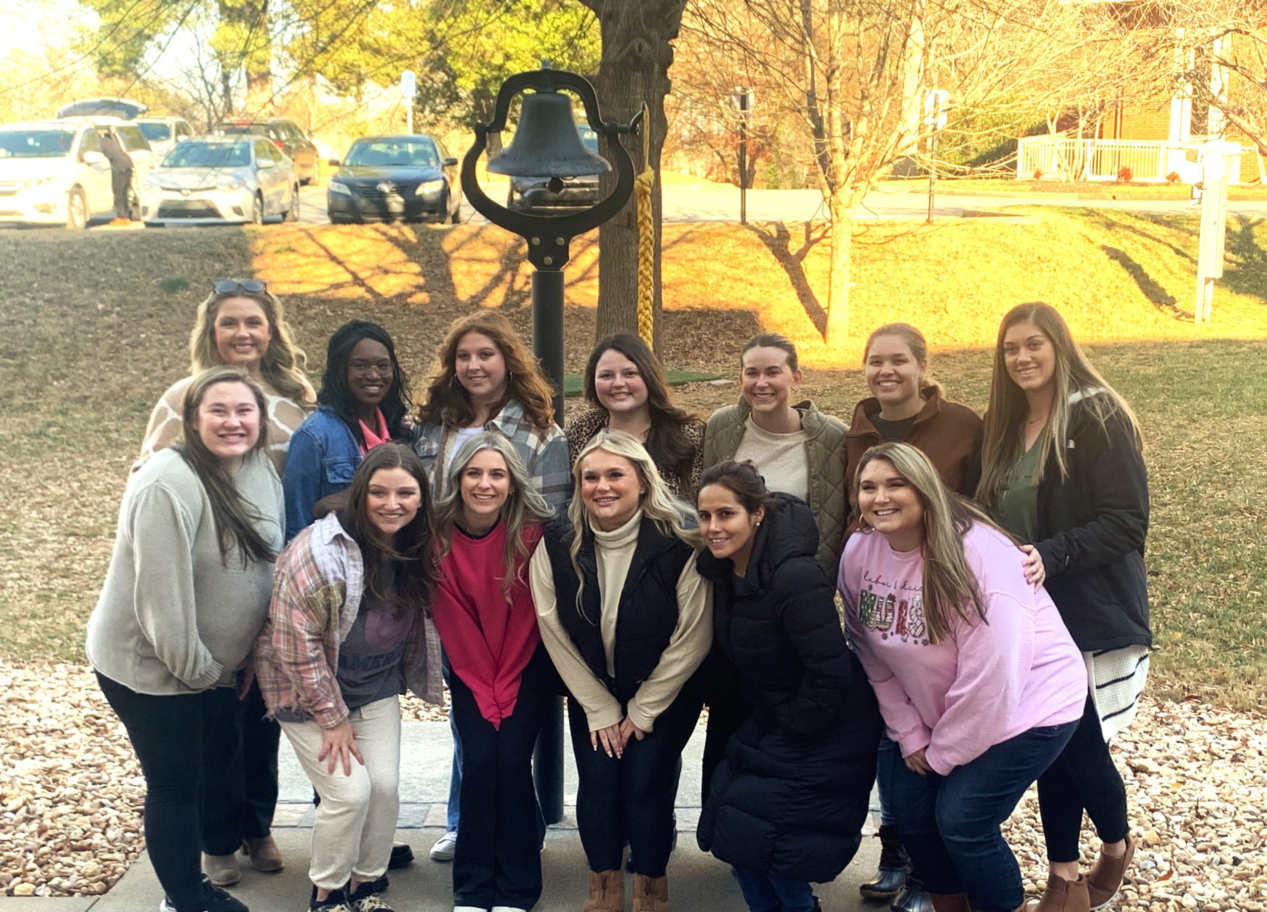 Thirteen students are celebrating their graduation this week from the Reinhardt University Cauble School of Nursing and Health Sciences. To commemorate the milestone of completing their undergraduate nursing education, each member of Cohort 9 proudly rang the new bell in front of the Tarpley Education Center on Monday, November 27th.