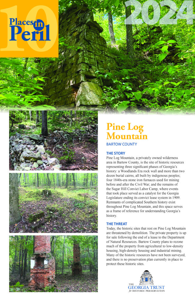 The Georgia Trust for Historic Preservation released its 2024 list of ten Places in Peril in the state on November 15th. Pine Log Mountain in Bartow County was placed on the list, thanks to the submission by Reinhardt University Professor, Dr. Don