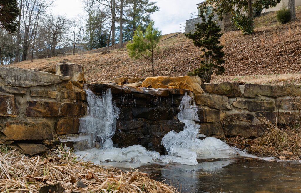 Cold weather in late January 2026 froze the waterfall leading to Lake Mullinex.