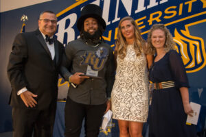 As the Team of the Year was named, the audience gave robust applause for the Men’s Lacrosse team. In May, the team won the University’s first-ever national championship in any sport with a 10-5 victory over Keiser University in the NAIA Men’s Lacrosse National Invitational in Greenville, South Carolina.