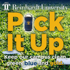 Last year, the Student Government Association purchased several blue trashcans with a gold Reinhardt logo, providing more ways to dispose of litter properly. Now, a campaign has been launched to challenge the Reinhardt family to act responsibly as caretakers of the campus and to encourage environmental responsibility.