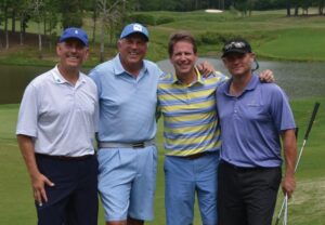 Tommy Beman, pictured second from right, with his team at a past Dave Henritze Scholarship Classic, was recently elected to the Reinhardt Board of Trustees.