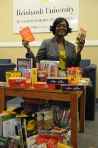 Adeogun first learned about the orphanage this past spring when her international business class, and a project management class taught by business instructor Tina Boosel, worked with SERV. Adeogun felt called to do more, so she set up a school supply drive on Reinhardt’s Waleska campus this fall.