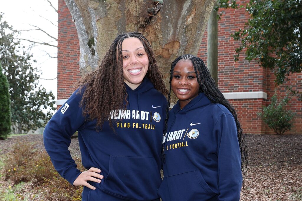 Salmon, who is from Massachusetts, and Allicock, from Georgia, were drawn to Reinhardt’s scholarship opportunity to play on a collegiate level and to help launch a brand-new athletic program. Having developed a talent for playing flag football in high school, the chance to keep playing excited them both.