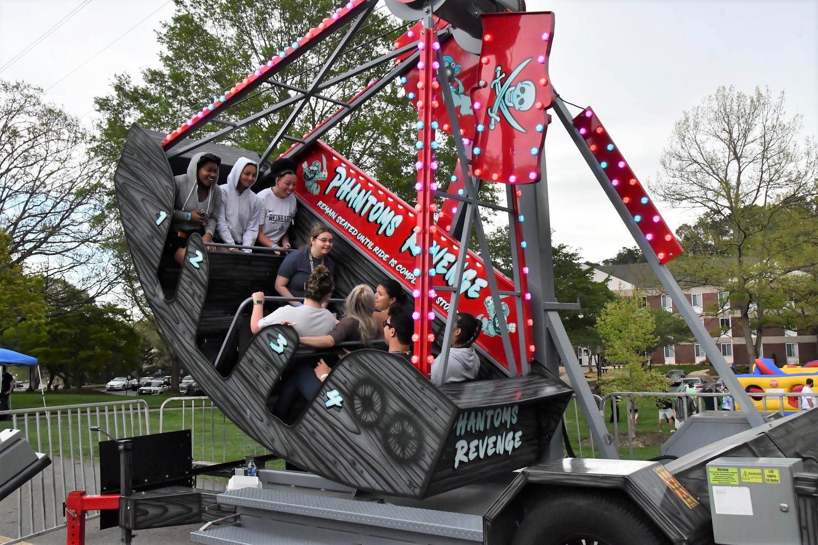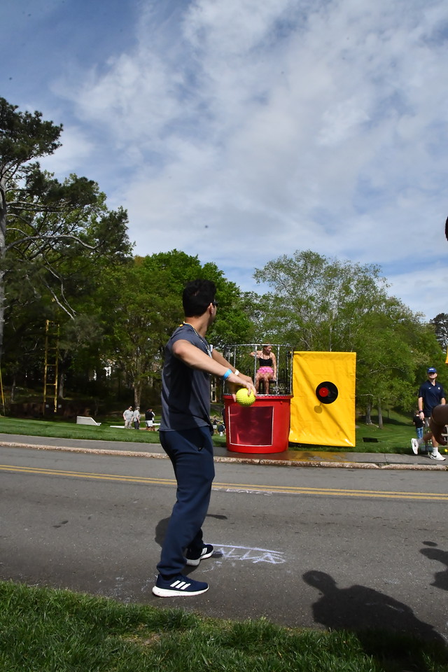Activities included an inflatable obstacle course, a carnival ride, a rock-climbing wall, cornhole, and a dunking booth. A picnic lunch was provided, and cotton candy was made on-site.