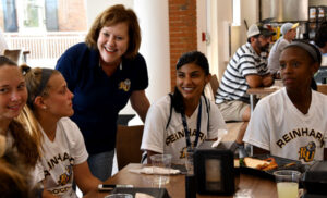Dr. Kina S. Mallard mingles with Reinhardt soccer players during the first week of classes. Photo by Jordan Beach