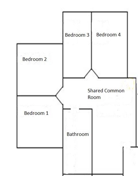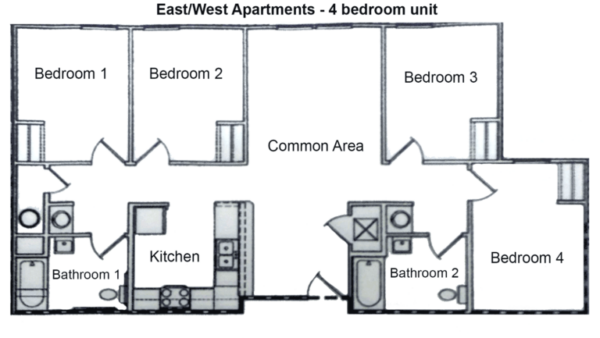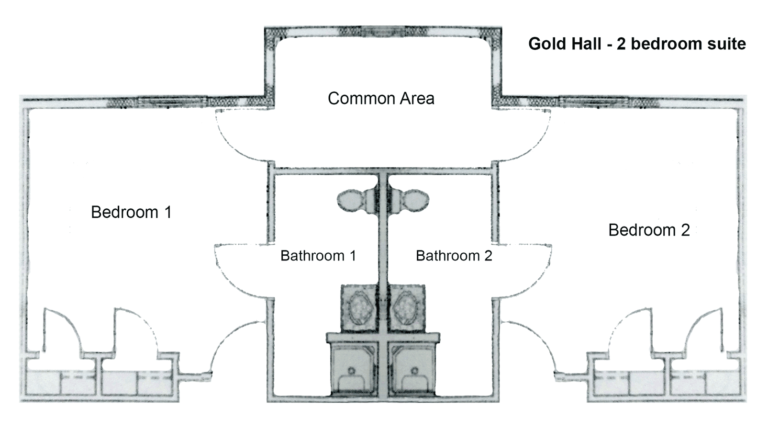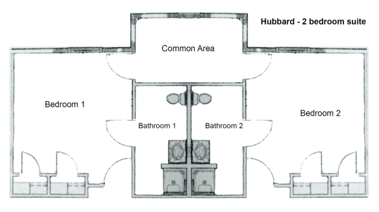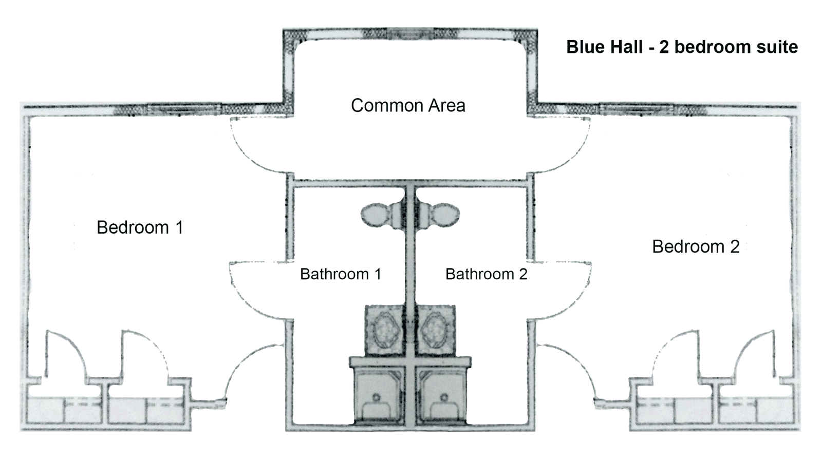 - Two-bedroom suite-style rooms with two students in each bedroom